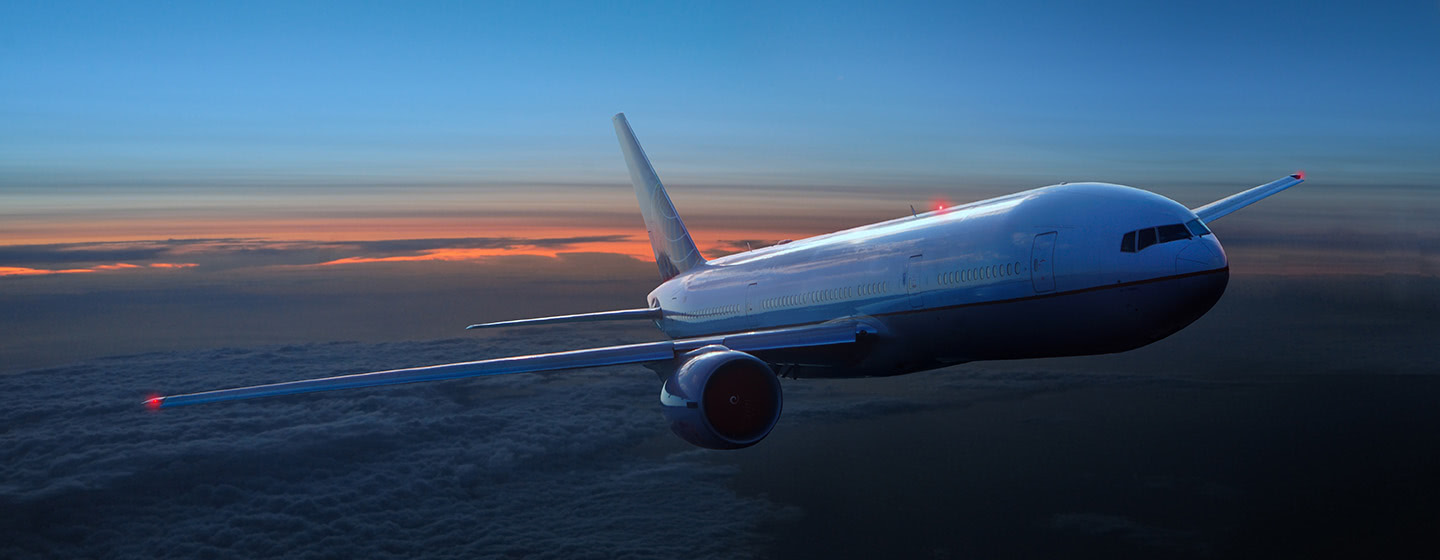 Airplane in the sky at night