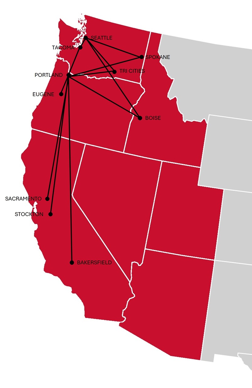 From the Pacific Northwest and all across the Western U.S., Market Express keeps freight moving with consistent capacity and regional know-how. Our network is built for the West — fast, flexible, and reliable on every lane.